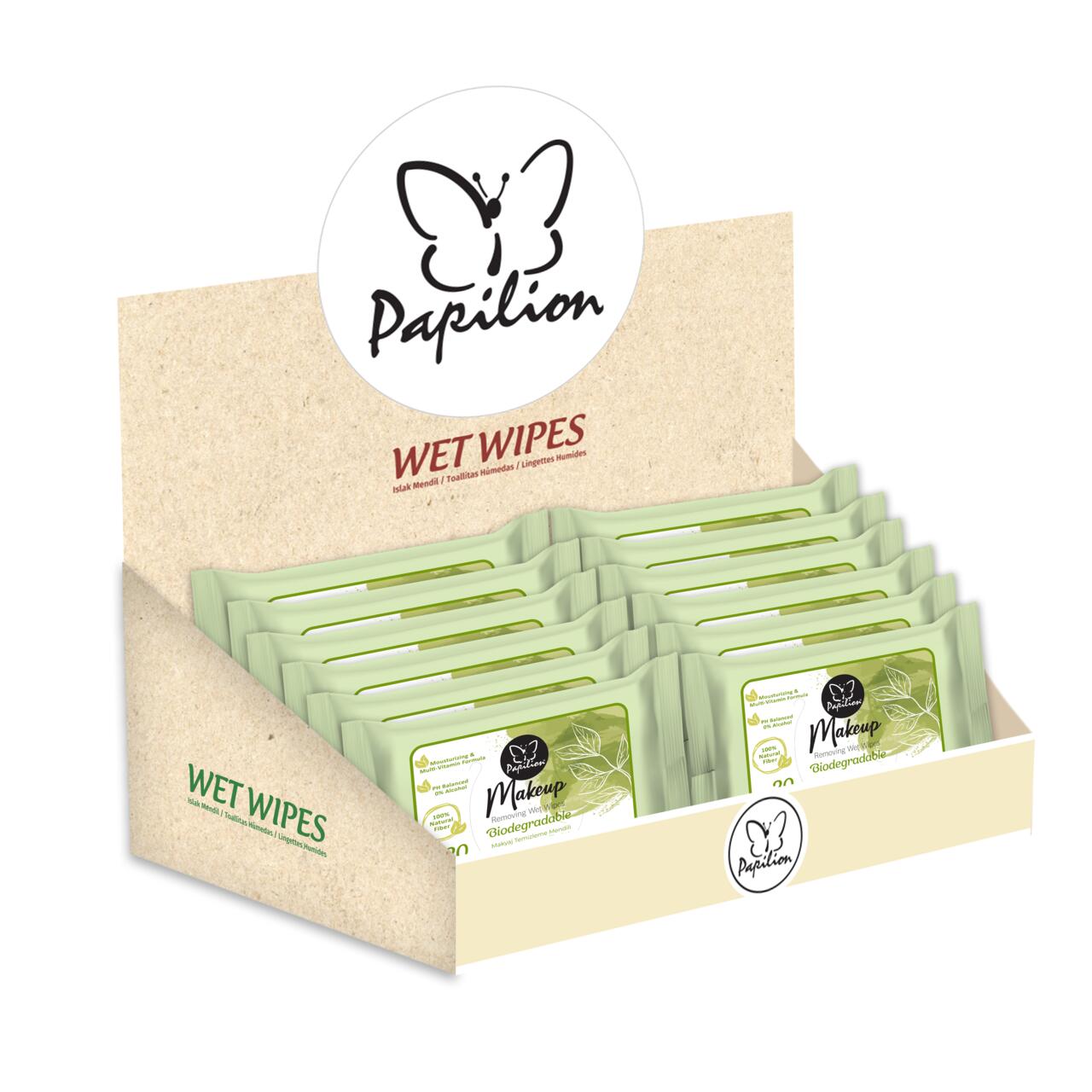 Șervețelele umede Papilion Make-Up Bio îndepărtează delicat și eficient chiar și machiajul rezistent la apă, lăsând pielea proaspătă și catifelată. Realizate din materiale biodegradabile și ambalate în format practic de 20 de bucăți, sunt ușor de transportat și ideale pentru utilizare acasă sau în deplasare.
